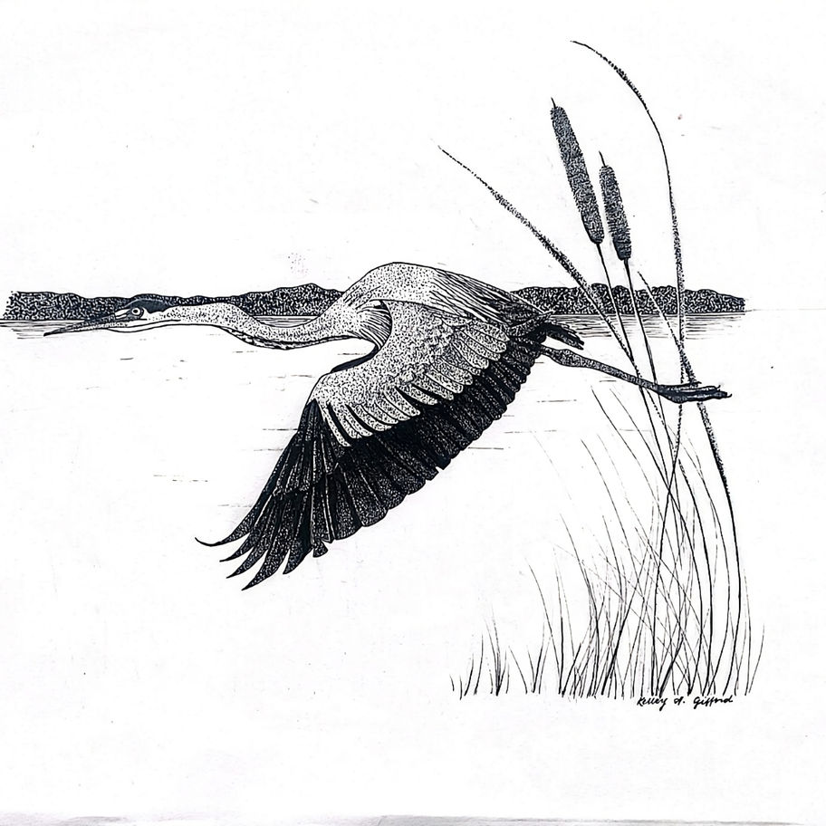 This hand drawn sketch of a Great Blue Heron was created by Bantam Lake resident Kelley Gifford and comes in a set of 6 cards - 4"x6" with envelopes. $15.00 per set